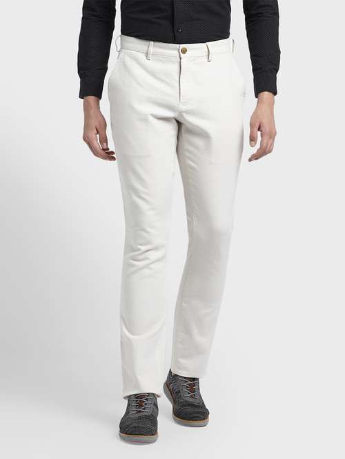 - » white textured flat front casual trouser