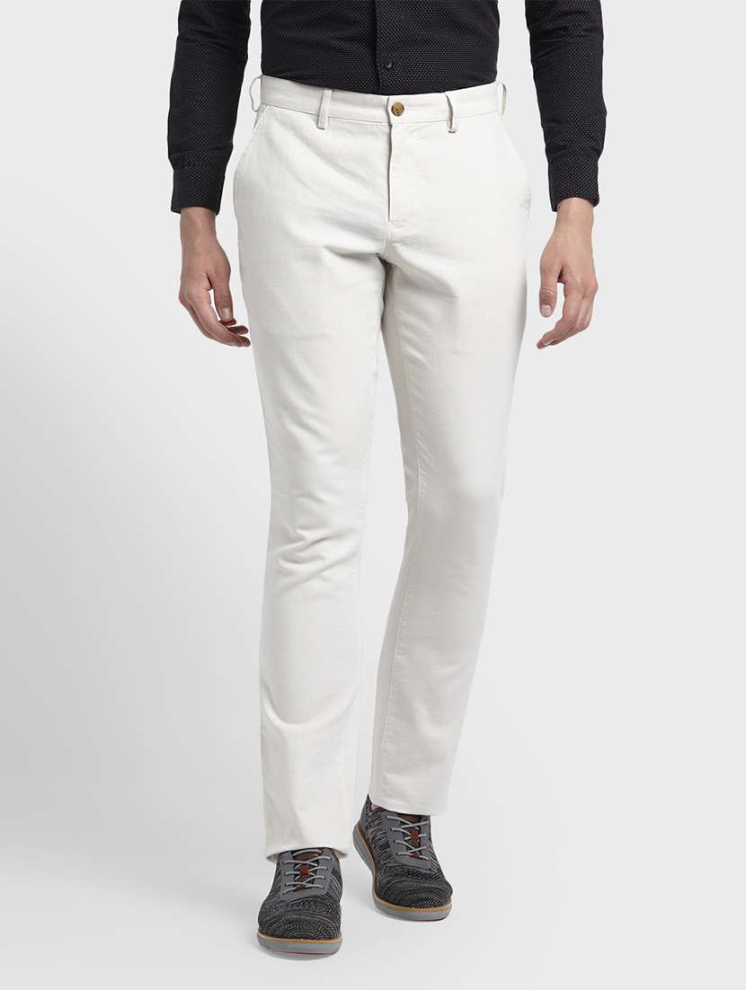white textured flat front casual trouser