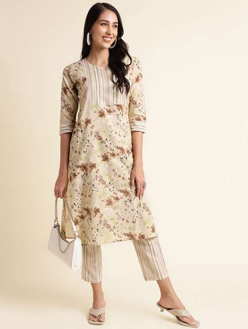 - Find gorgeous sets of ethnic wears in trending designs in beige colors suitable for a number of occasions.