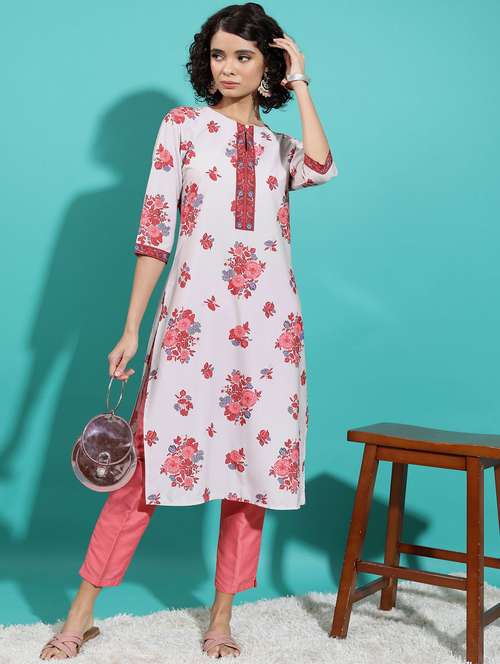 - Grab this beautiful kurta made up of cotton blend fabric featuring key hole neck designs.