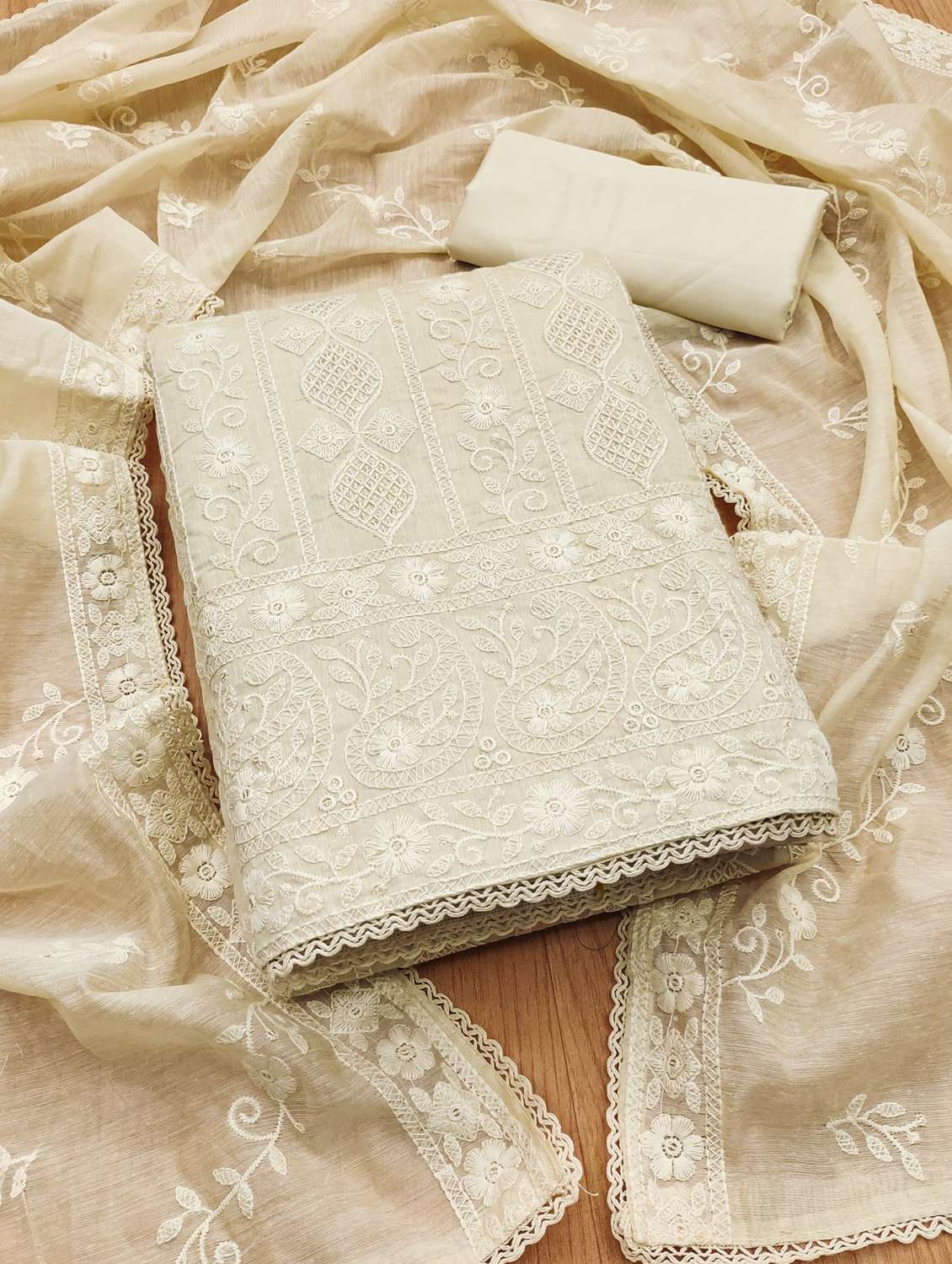 - Look ultra gorgeous in unstitched suits from Leeli Peeri Designer and grab these beautiful suits in cream colour.