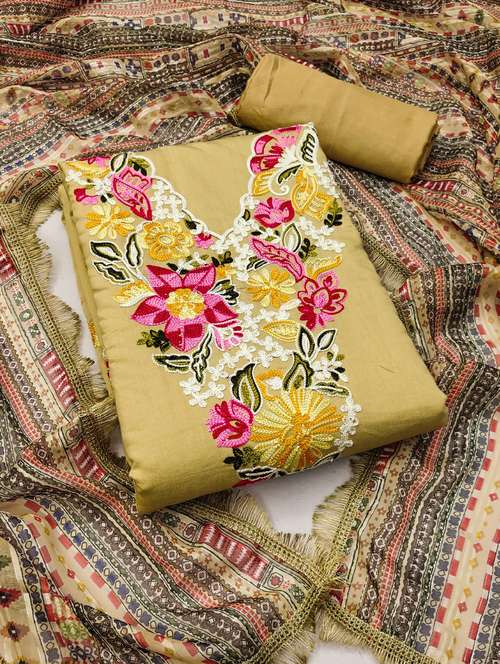 - Look ultra gorgeous in unstitched suits from Leeli Peeri Designer and grab these beautiful suits in beige colour.