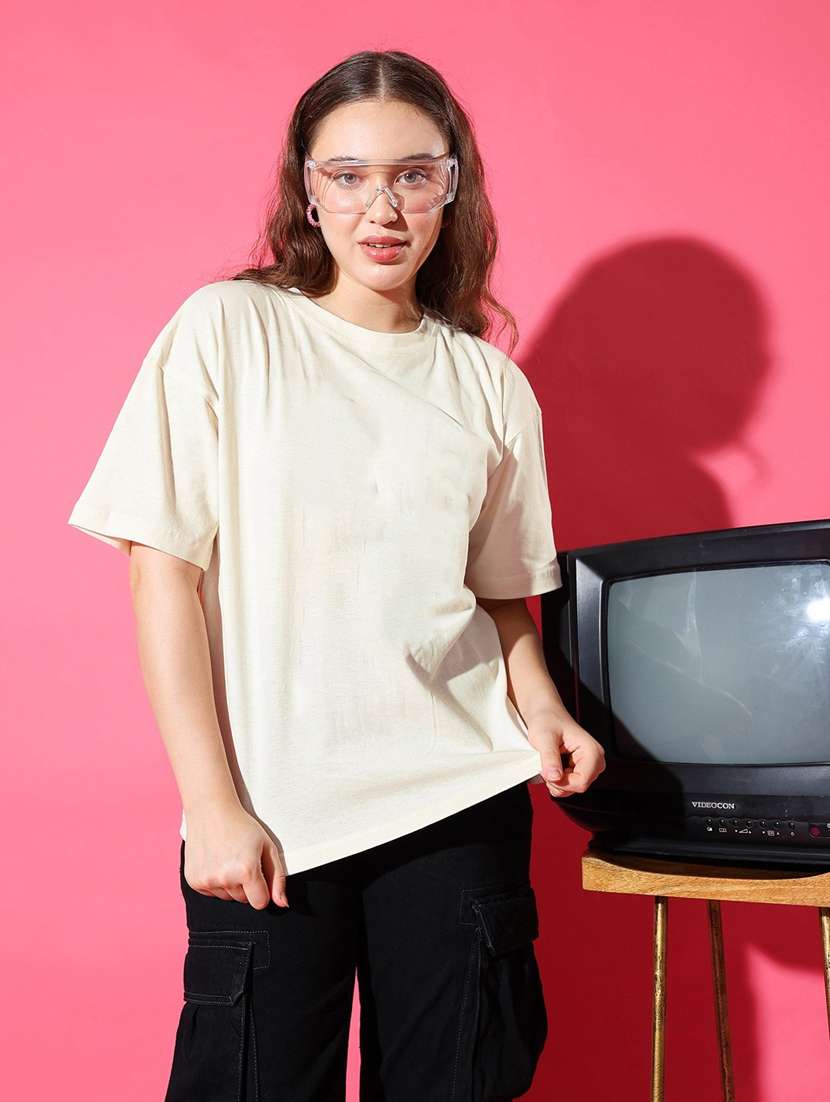 - » women solid short sleeves oversized t-shirt