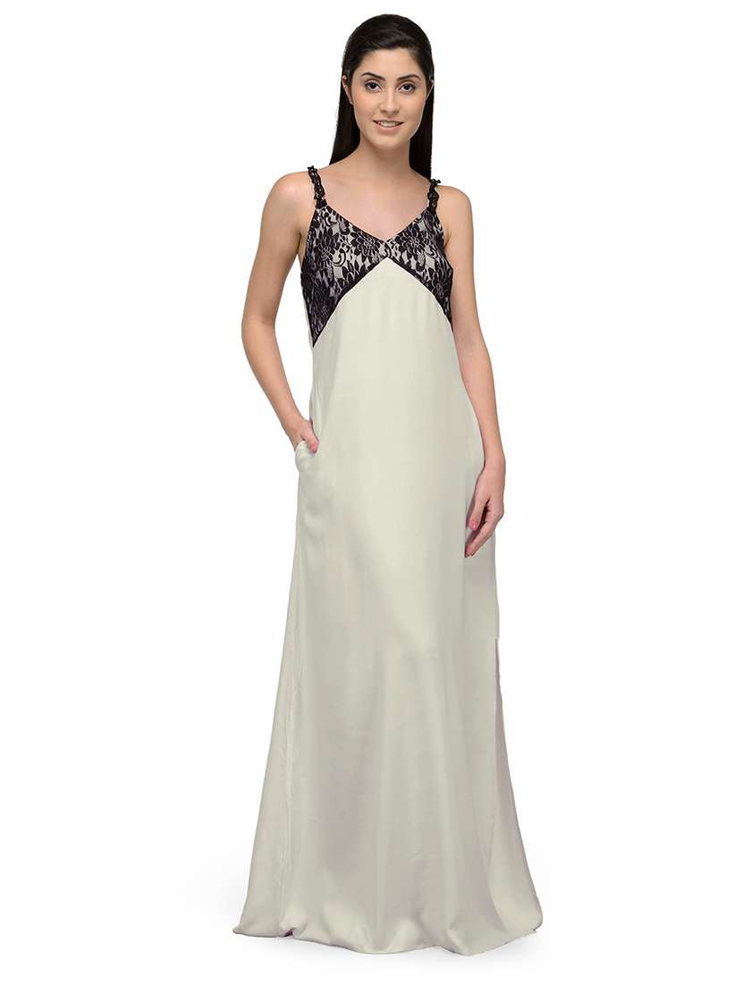 v-neck solid nighty - 20033438 - Very Small Image - 1