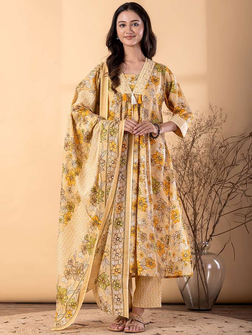 - » women floral three quarter sleeve kurta pant with dupatta set