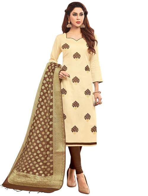 embroidered churidaar unstitched suit - 16924591 - Very Small Image - 1