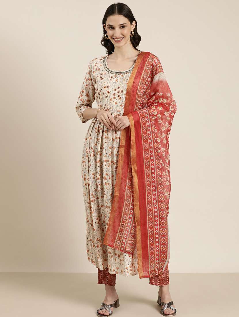 - Find gorgeous sets of ethnic wears in trending designs in cream colors suitable for casual wear of occasions.