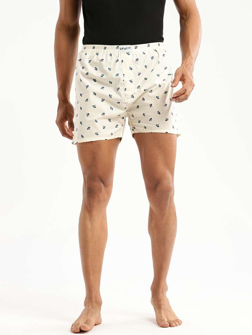 SHOWOFF Men's Cotton Slim Fit Printed Cream Boxer