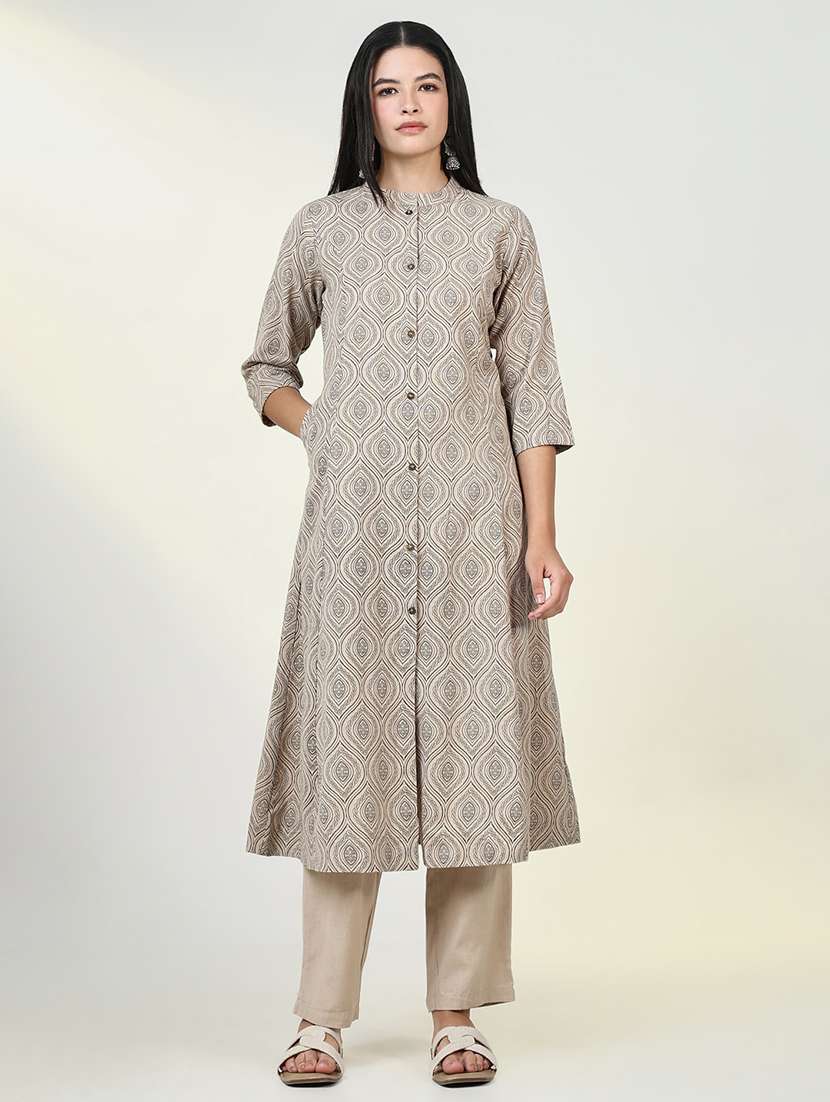 - » women beige printed kurta pant set