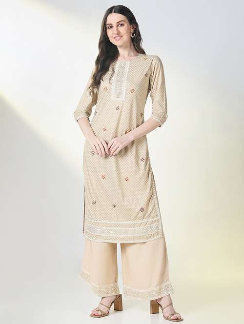 - » women three quarter sleeve kurta palazzo set