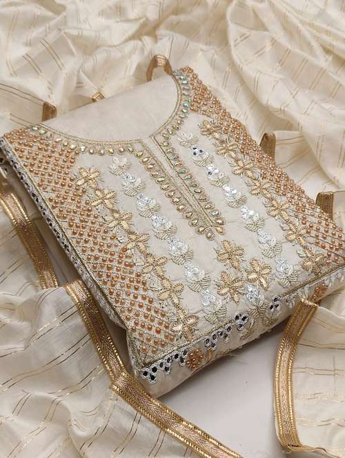 - Look ultra gorgeous in unstitched suits from Manvaa and grab these beautiful suits in cream colour.