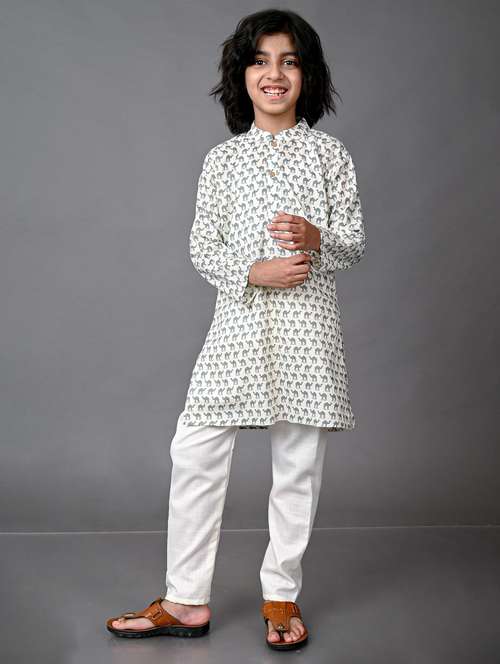boys printed cotton kurta pyjama set - 20943190 - Very Small Image - 1