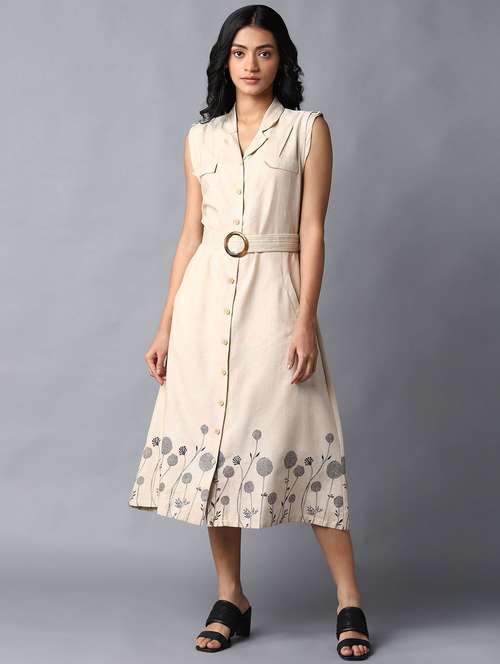 - » beige floral a-line ethnic dress