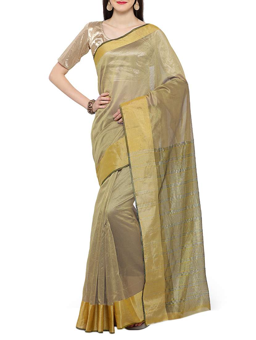- » women's bordered beige colored saree with blouse