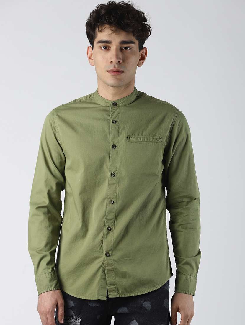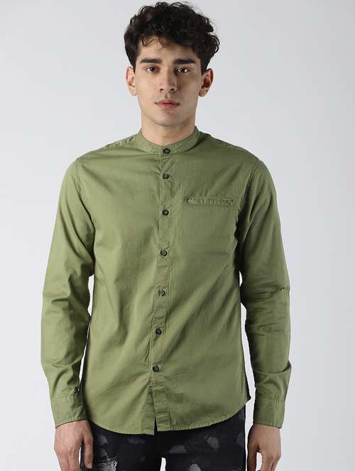 olive green solid casual shirt  - 16606441 - Very Small Image - 1