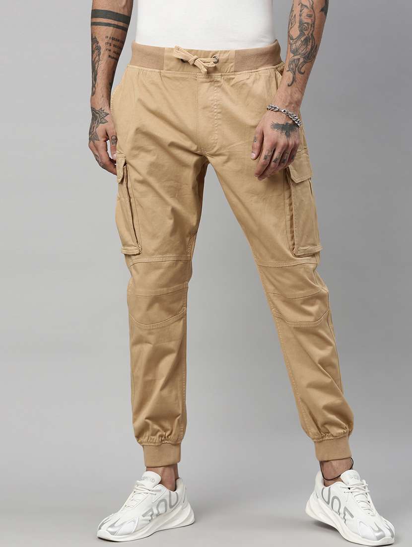 - » beige solid cargos casual trouser