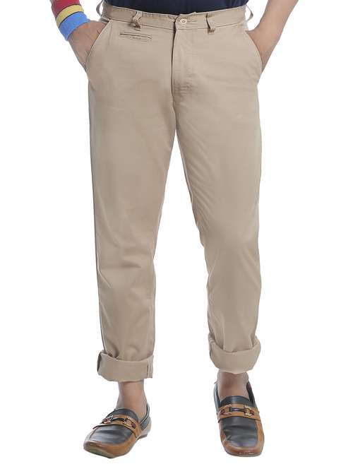 beige cotton flat front casual trouser - 12299255 - Very Small Image - 1