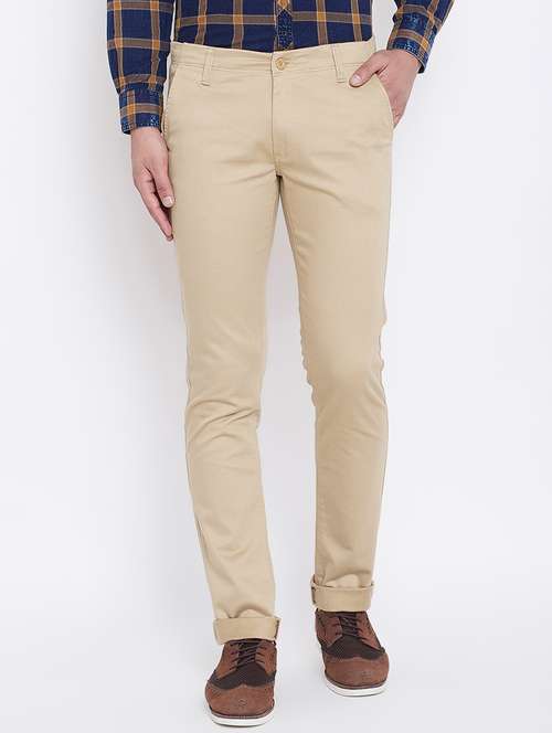 beige solid chinos
