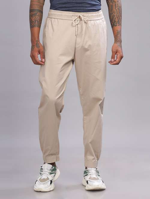 - » men beige solid cotton jogger