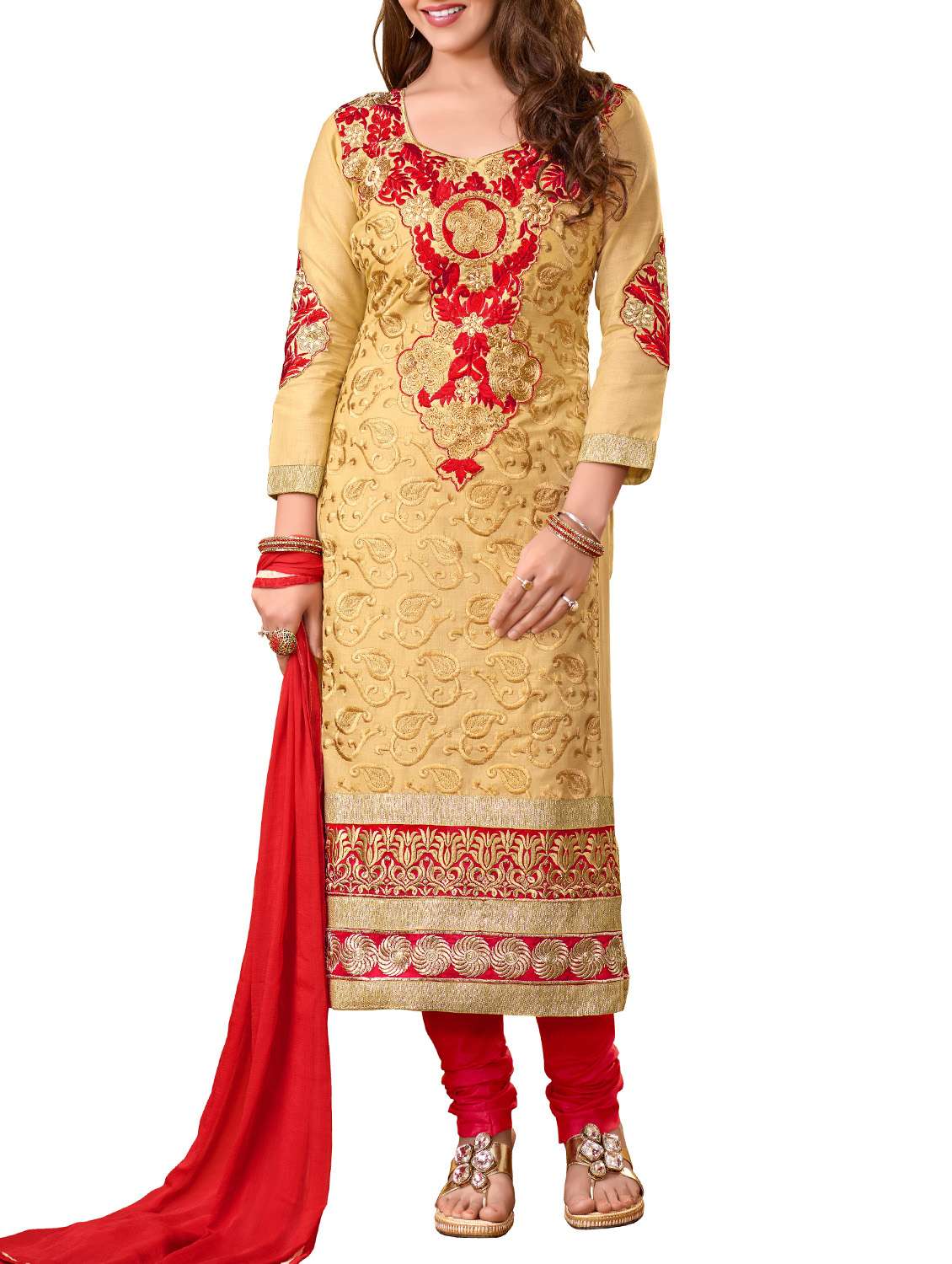 - Look ultra gorgeous in unstitched suits from Kavya and grab these beautiful suits in beige colour.