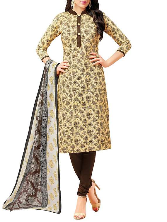 beige cotton unstitched suit