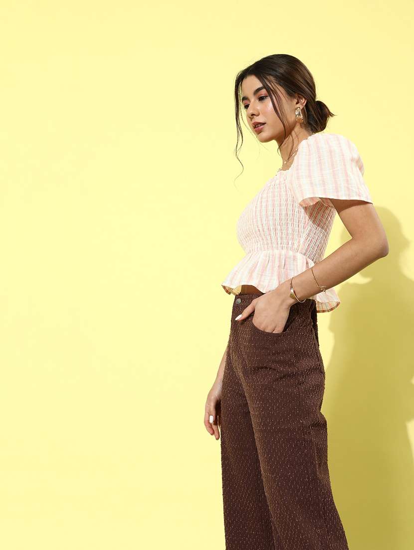 women striped puff sleeves peplum top