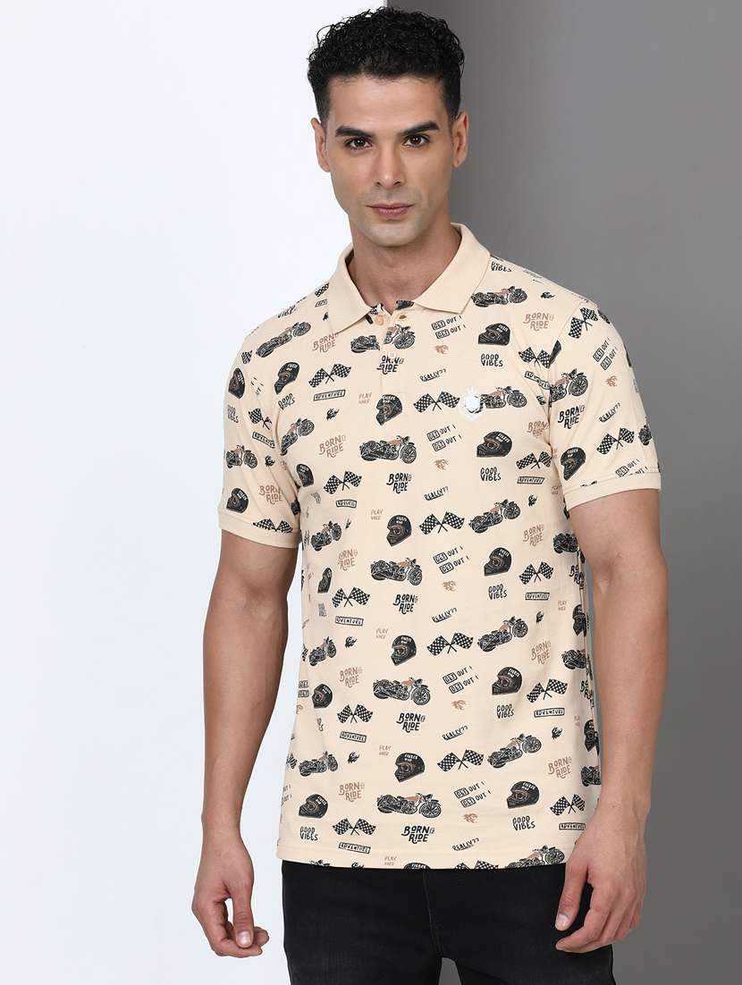 - » men printed short sleeve slim fit polo t-shirt