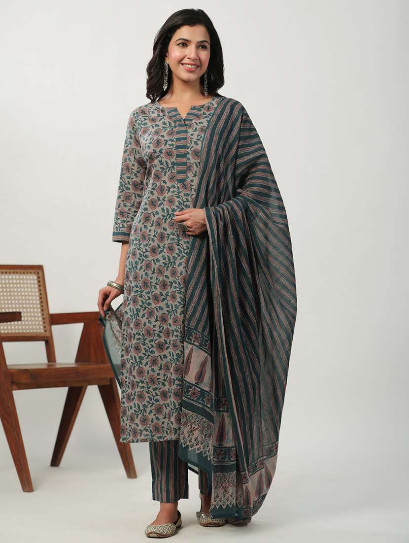 women three quarter sleeve kurta pant with dupatta set