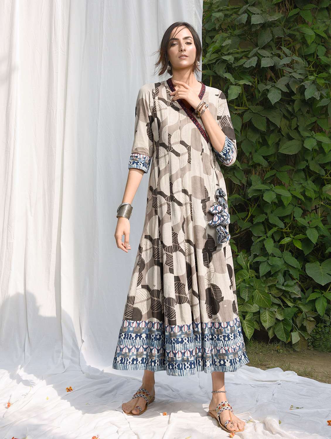 - » angrakha embroidered dress with tassels