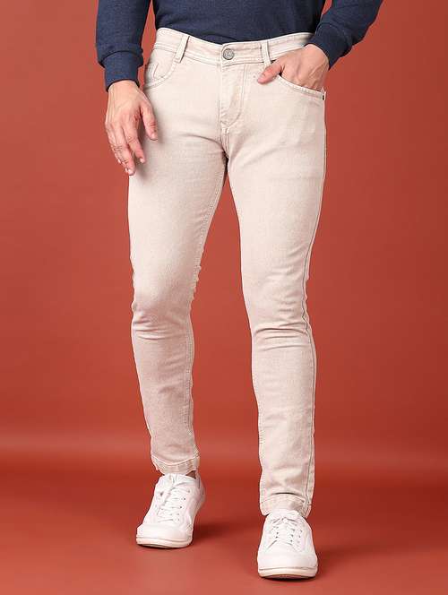 - » men beige ankle length plain jeans
