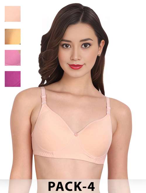 Liigne Women Everyday Non Padded Bra (Pack Of 4) - Made of Pure Cotton Full Coverage Non Wired Pushup Soft Cup for T-Shirt Saree Dress Sports Garment for Daily Use Everyday