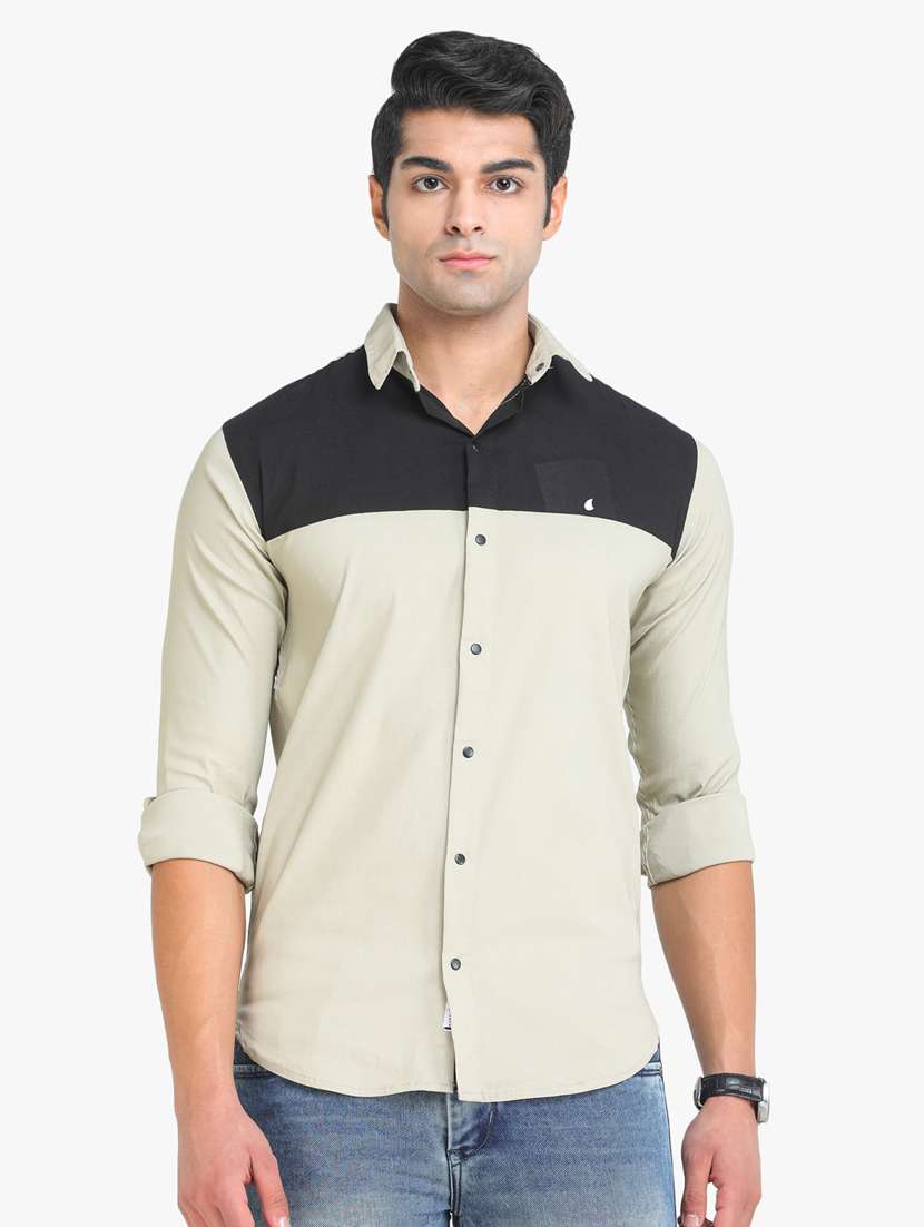 beige color-blocked casual shirt