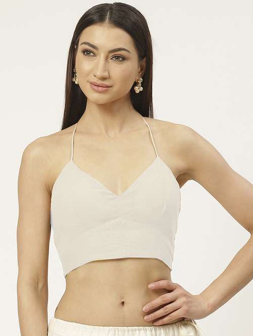 - » beige cotton solid blouse