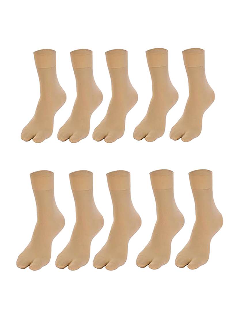 MUKHAKSH (Pack of 5 Pairs 10 Socks with Thumbs) Women Ladies Girls Beige Plain Transparent No show Socks with Thumbs