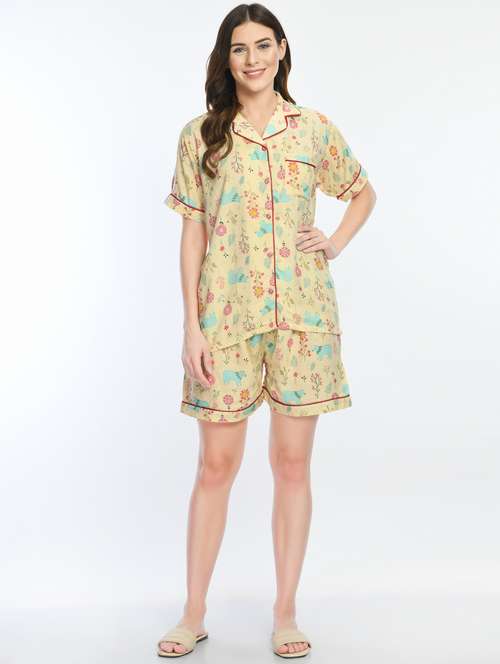 - » shirt collar printed nightwear shorts set