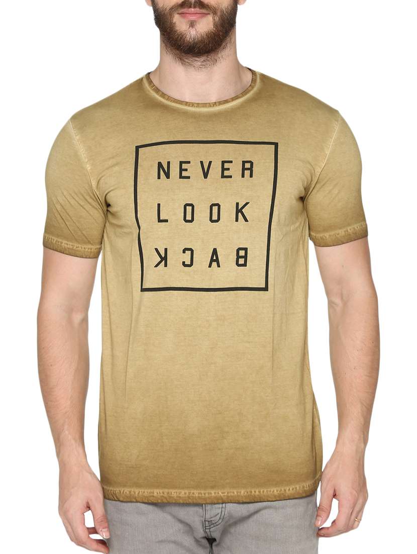 beige cotton chest print tshirt