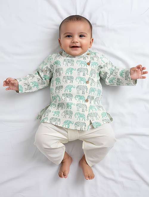 - » kids printed long sleeve dhoti kurta set