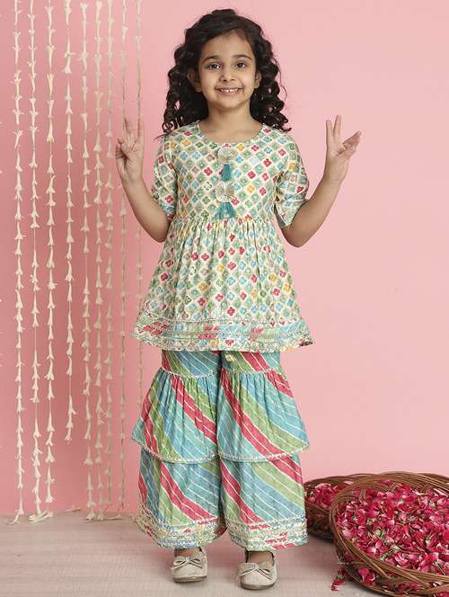 - » girl floral print cotton kurta sharara set