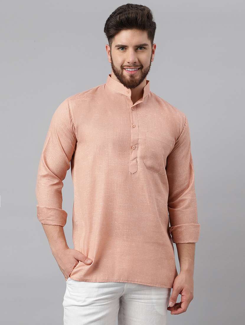 - » peach solid mandarin neck short kurta