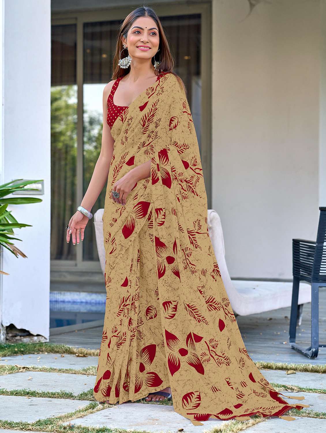 - » women printed casual wear saree with blouse