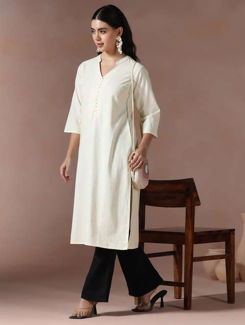 - Grab this beautiful kurta made up of cotton fabric featuring mandarin collar neck designs.