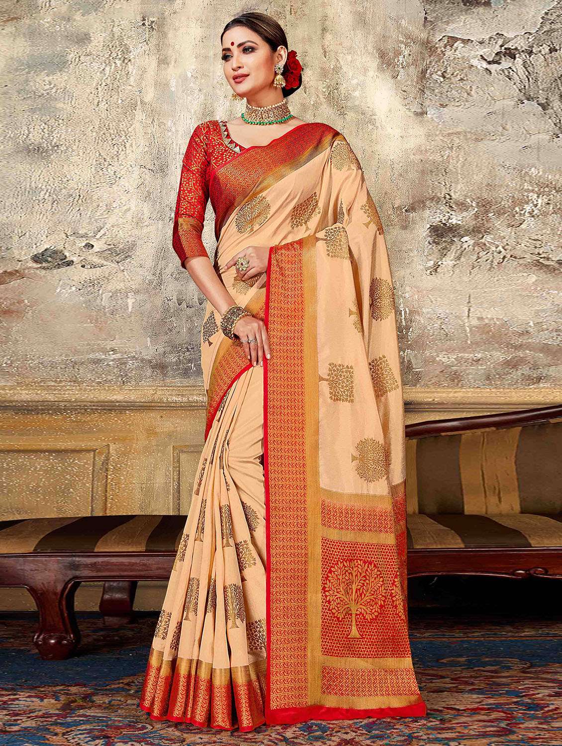 - » self design woven saree with blouse