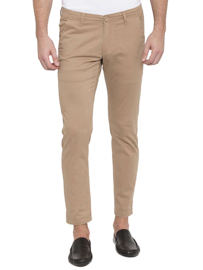 Spykar Mens Beige Slim Fit Mid Rise Trousers (Rico)