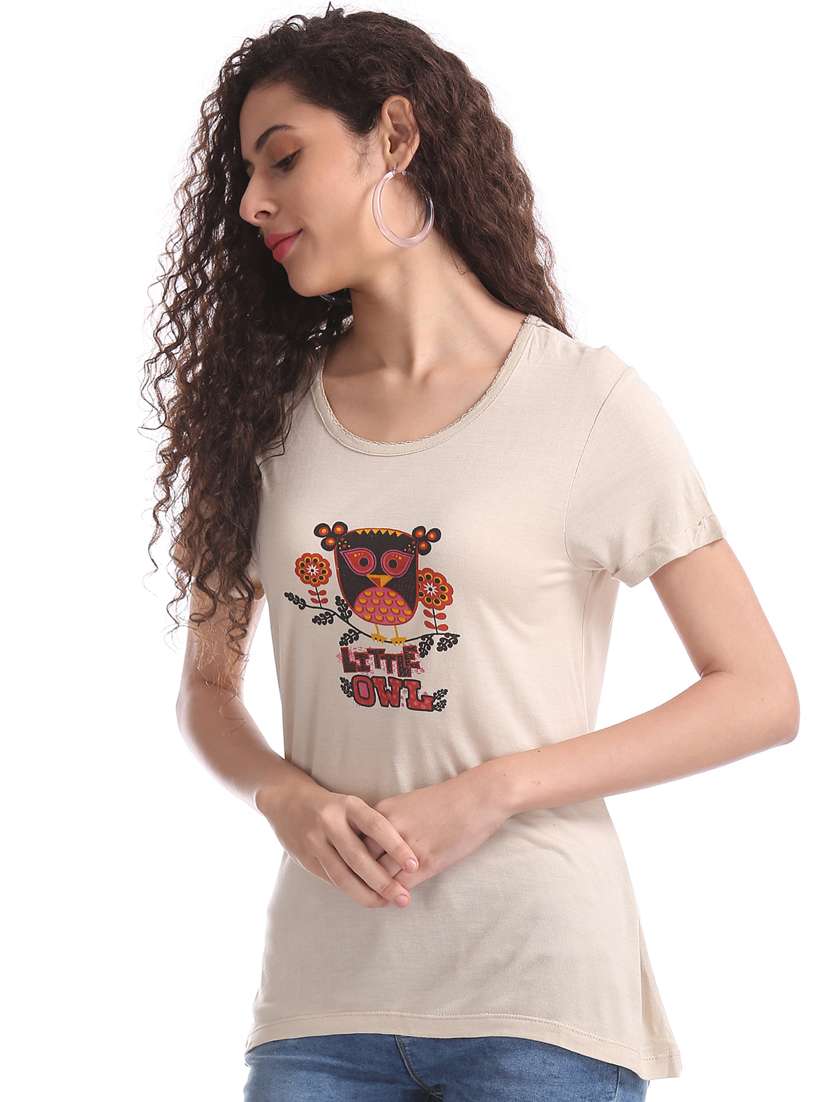 - » women's front print round neck t-shirt