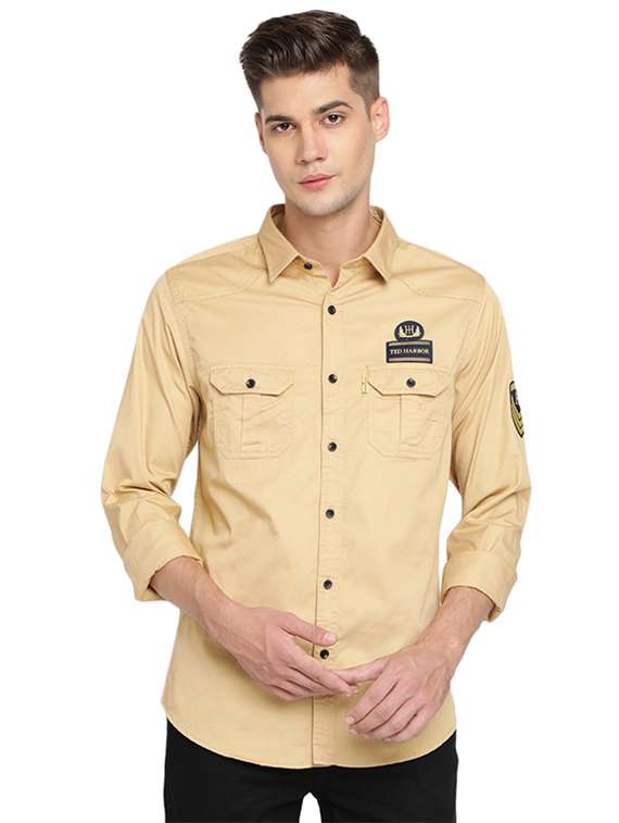 beige solid casual shirt