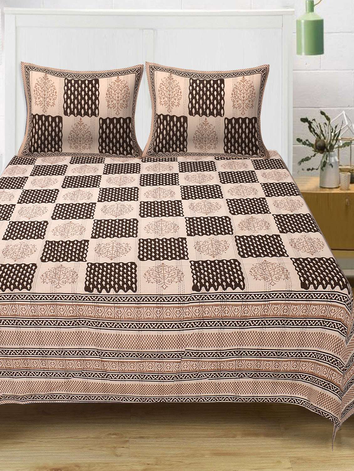 - » cotton kantha look jaipuri print super king size bedsheet with 2 pillow covers