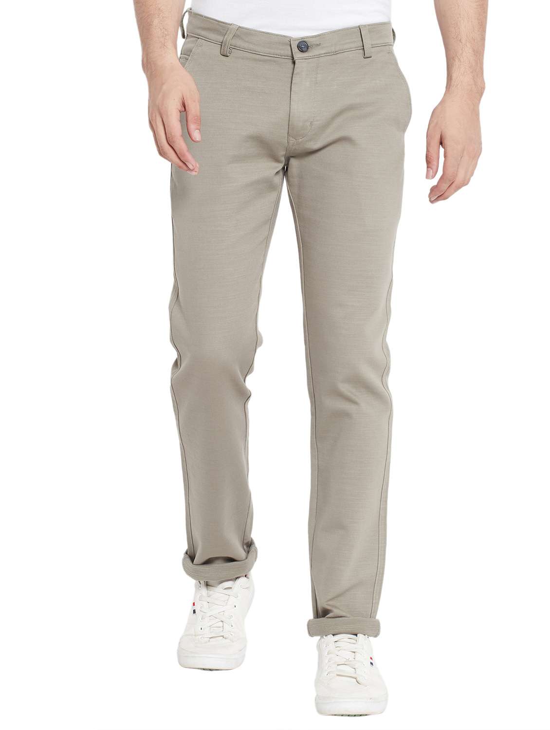 - » beige cotton flat front casual trousers