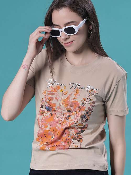 • It’s definitely not okay to be boring! So, are you ready to take things a tad bit unconventionally? Wear your tees in front print types for (casual wear occasions and that too in cotton material.