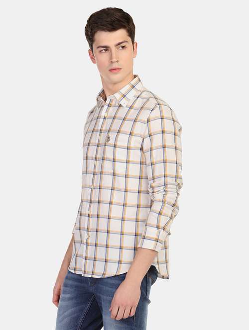 beige checkered casual shirt