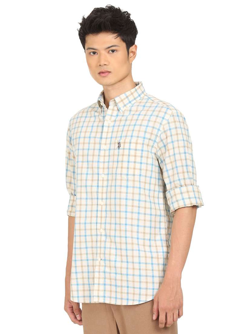 beige checkered casual shirt